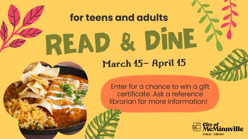 Read a novel written by a BIPOC (Black, Indigenous, Person of Color) author for the chance to win a gift certificate to a local restaurant. Read and submit your title to the library between March 15, 2025 – April 15, 2024.