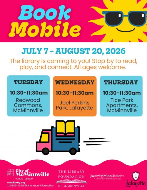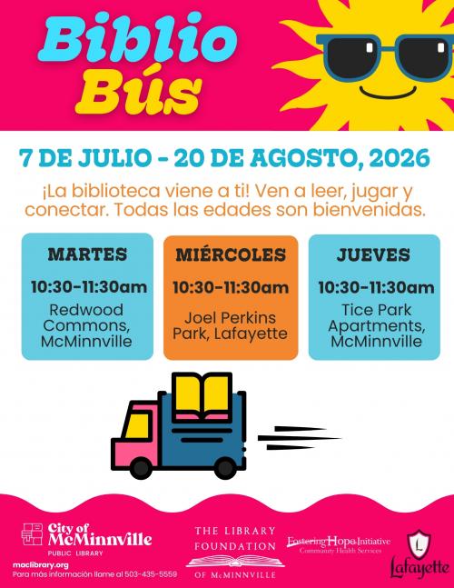 Summer Fun (Diversión de Verano) es una colaboración entre McMinnville Parks and Recreation and la Biblioteca, junto con socios comunitarios.